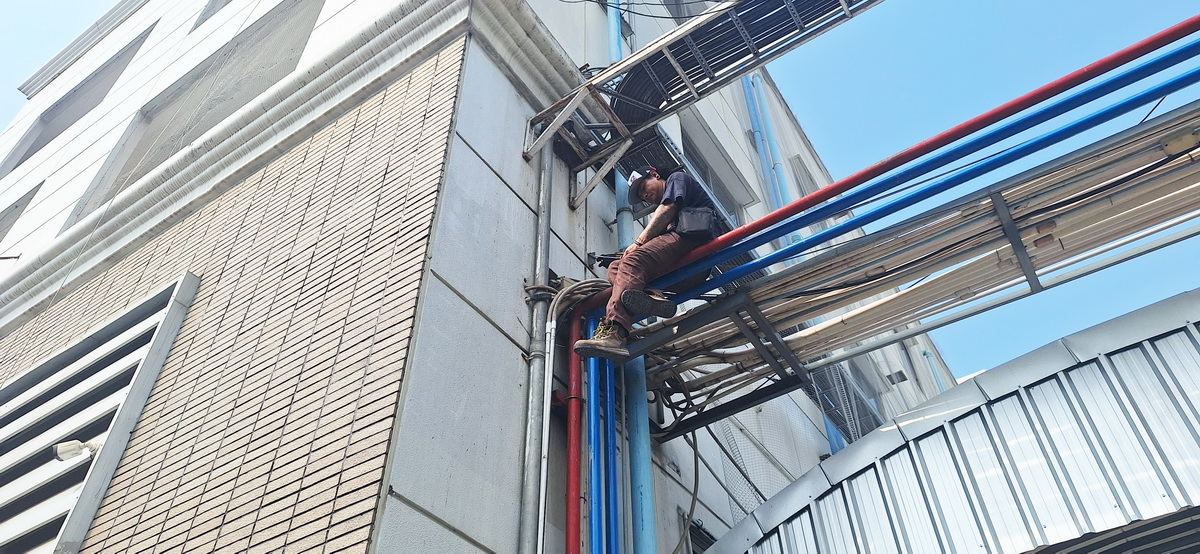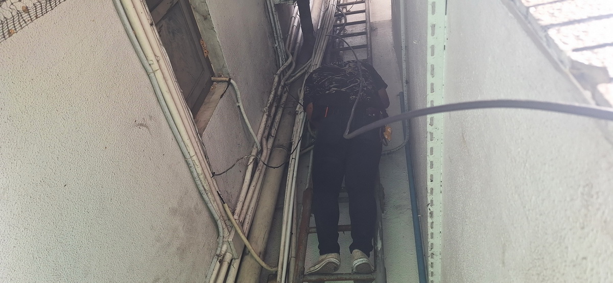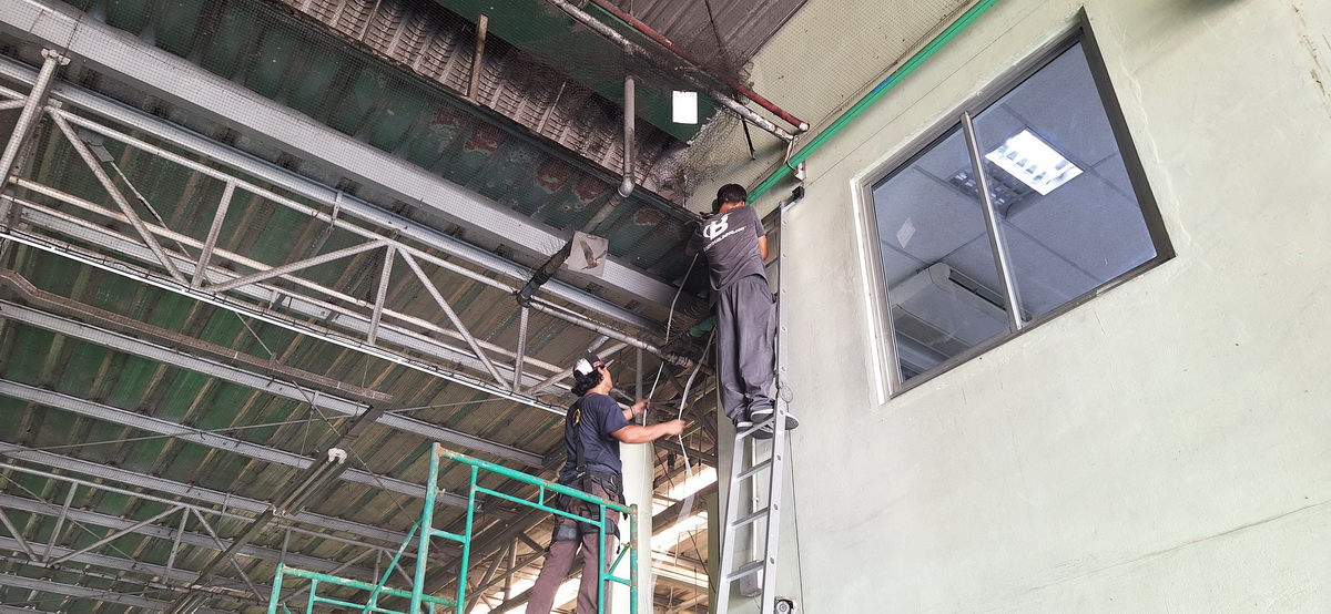 ช่างติดตั้งท่อพลาสติกสีขาว เพื่อเก็บสายแลน Cat6 Link
