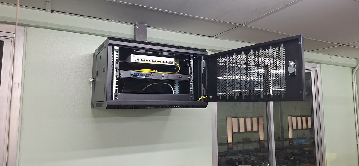 ติดตั้งอุปกรณ์ไฟเบอร์ออฟติก และ Switch ในตู้แร็ค 6U พื้นที่สำนักงาน Factory C